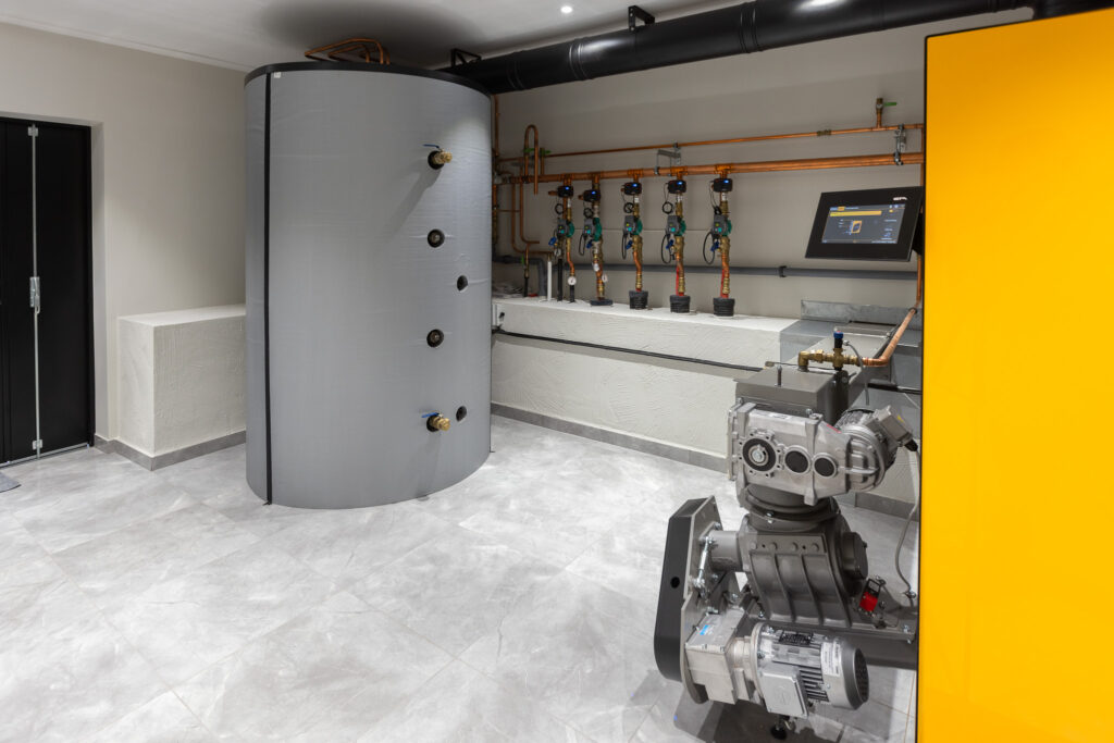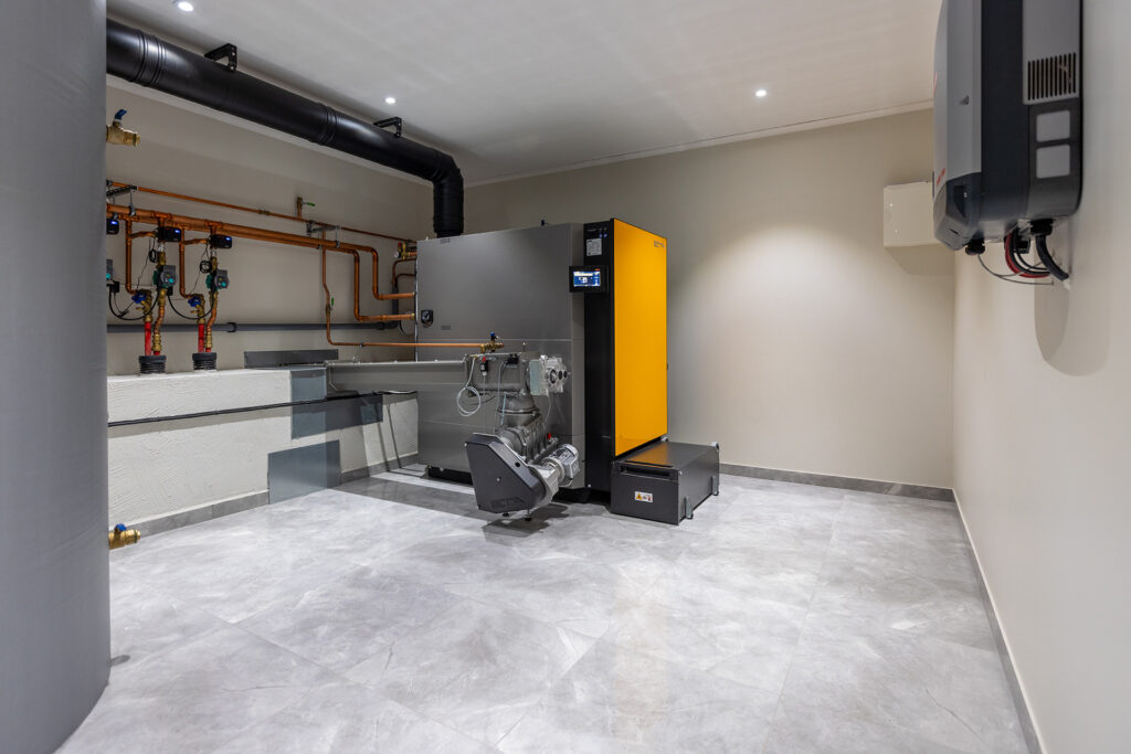 Paret har lagt stor omsorg även på själva pannrummet. Väggarna är putsade i varmgrå ton, golvet är kaklat och spotlights i taket ger rummet en hemtrevlig känsla i sann Skinstad-anda. Och den nygrävda kulverten förbinder gårdens alla byggnader till en gemensam, stabil värmekälla. Magnus Niklasson och Nettan Lindholm har helt enkelt fått precis vad de sökte – en miljövänlig, ekonomisk och smart värmelösning.